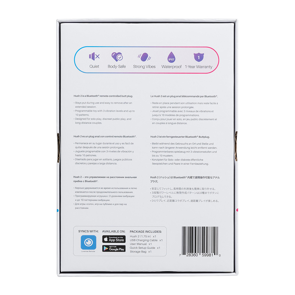 - Синхронизация с онлайн-контентом - Hush 2 для мощных анальных вибраций, Gush 2 для удовольствия ствола - обе функции синхронизированы с вашими любимыми видео или играми.