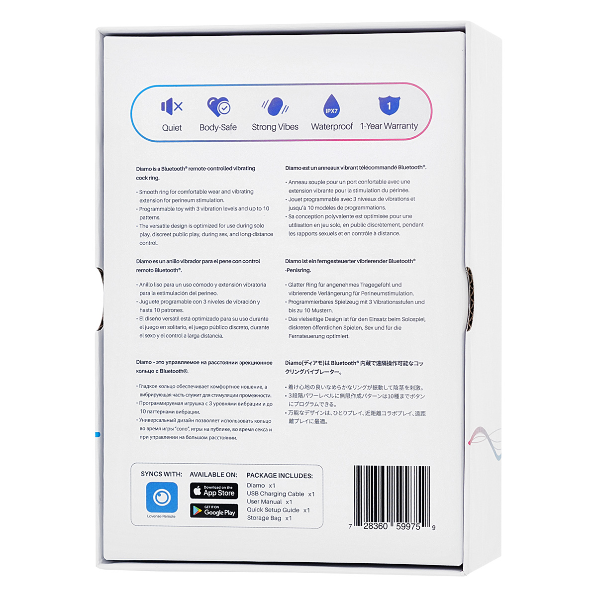 Виброкольцо обладает самым широким диапазоном управления среди всех носимых Bluetooth-вибраторов. Его эластичное эрекционное кольцо имеет размер внутреннего диаметра 43 мм и подходит для любого размера. Гладкий и мягкий силикон обеспечивает комфортное длительное ношение, усиливая эрекцию и оттягивая оргазм. Кроме того, вибрации кольца приятно стимулируют обоих партнеров, делая Diamo идеальным выбором для пар.