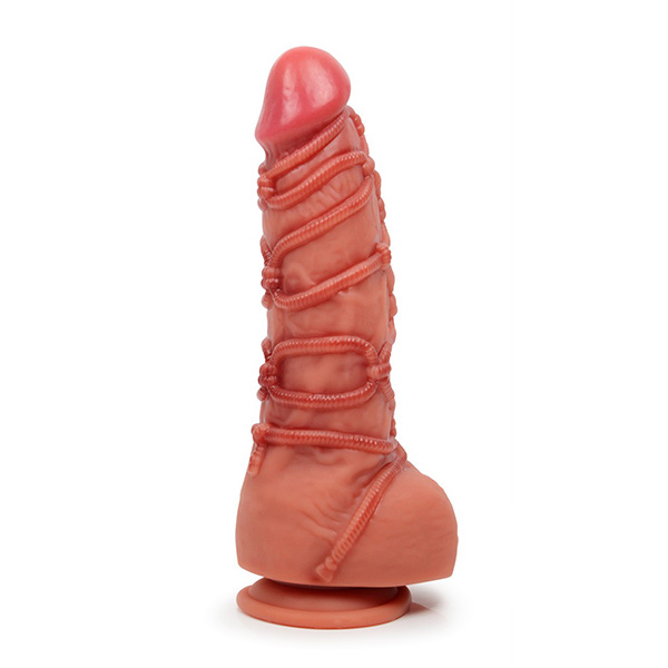 Ярко выраженные головка и мошонка, хорошо прорисованные складочки и венки, естественный оттенок поверхности придают изделию максимальной реалистичности. Объёмный ствол дарит чувство наполненности. Имитация верёвки, обмотанной вокруг пениса, усиливает возбуждение.