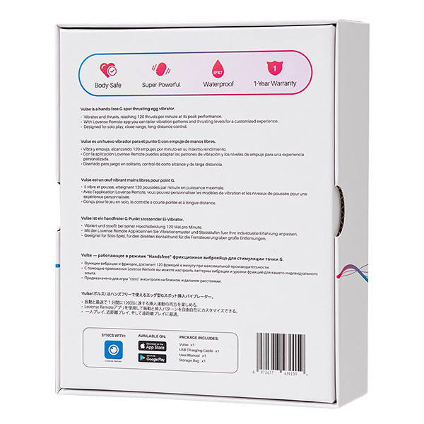 Волнение на публике, перед другими, которые понятия не имеют? Только вы и ваш партнер знаете, благодаря невероятно умному яйцу, скрывающемуся внутри вас. ОН держит телефон с мобильным приложением на ладони и максимально возбужден, когда смотрит на вас, зная, что вы единственная, у кого вы в его руках. Эта мысль заставляет ваше сердце биться чаще? Да, это совершенно нормально и желанно. Не ждите ничего и испытайте неизвестность. И то, что вы теперь будете одни на несколько дней или недель, потому что ваш партнер уезжает в командировку? Это не препятствие и для Lovense Vulse, которым можно управлять благодаря умному приложению из любой точки мира. Моменты волнения так близки и ждут, когда вы схватите их и не упустите!