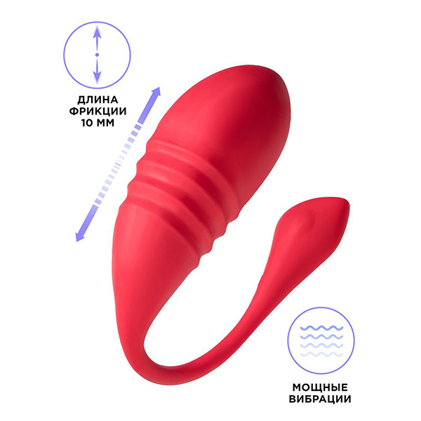 Виброяйцо отличается функцией толчка , которая идеально воздействует на точку G. Оно способно развивать скорость до 120 движений в минуту с выдвижением на 10 мм. В меню предустановок вы найдете 7 режимов, но благодаря приложению вы можете получить больше в соответствии с вашими желаниями. Функция Ultimate Climax в приложении позволяет управлять звуком, музыкой или движением, что освобождает руки пользователя для других занятий и удовольствий. На конце ремешка находится единственная кнопка, с помощью которой вы управляете яйцом вручную. Вы также можете использовать ремешок для сольных действий, чтобы стимулировать клитор. Вес устройства составляет 82 гр, что оценят более опытные пользователи .