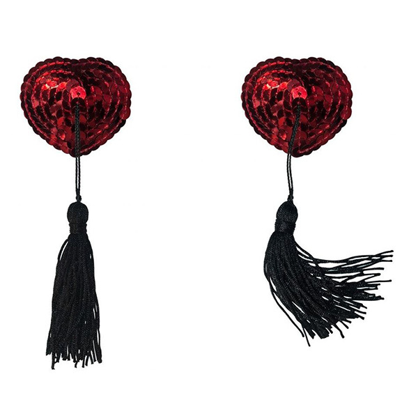 Добавить изюминку в любовную игру Вам помогут оригинальные красные пэстисы-сердечки Lola Pasties Burlesque Gipsy Red 3634-04lola, украшенные черными кисточками. Пэстисы имеют внутреннюю сторону с клейким слоем, который позволит c легкостью надеть и снять аксессуар. Подходят для многоразового использования так как на внутреннюю сторону нанесен слой качественного и безопасного силиконового клея.