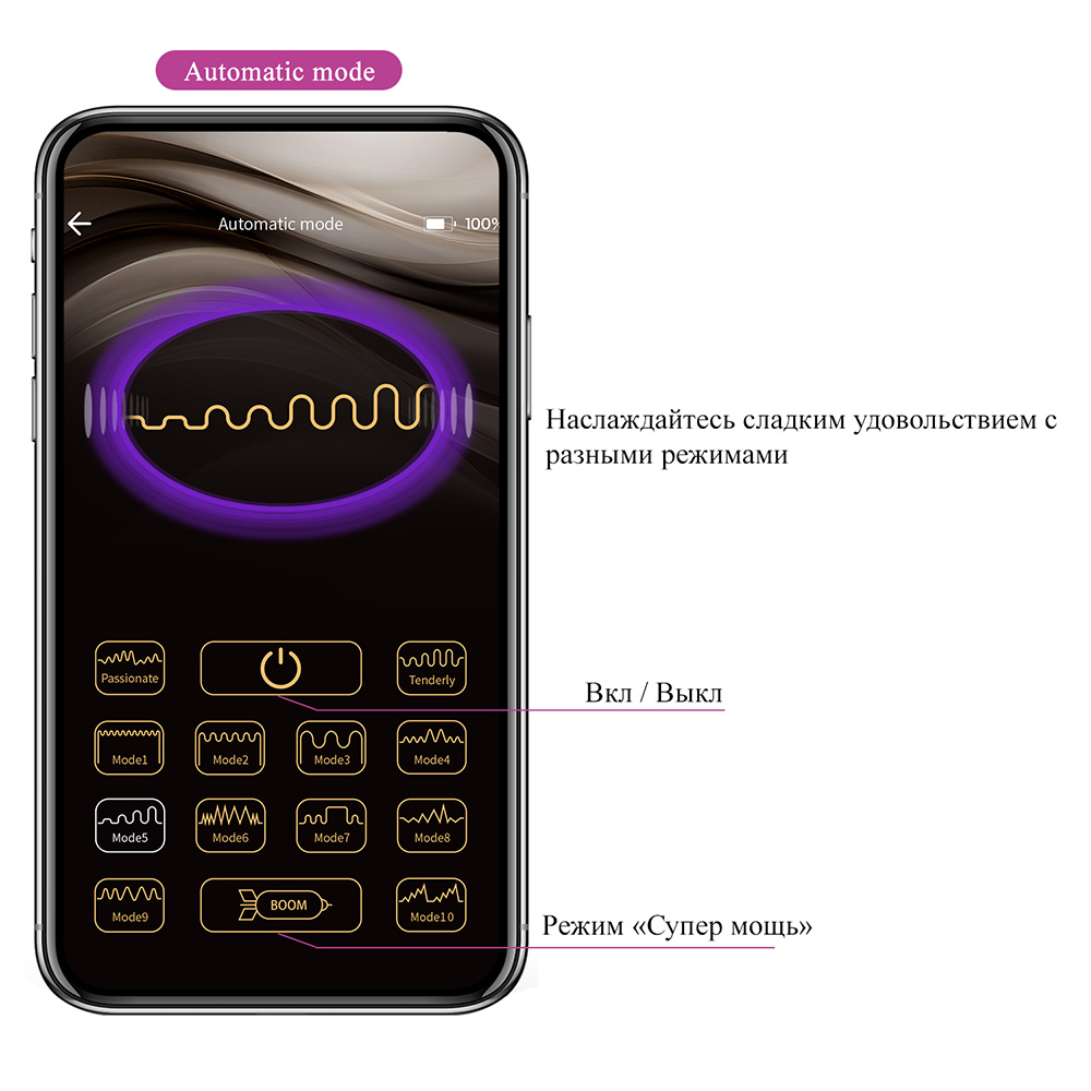 Устройство также поддерживает управление на расстоянии, что добавляет интерактивности. Интимная игрушка может работать под управлением вашего смартфона - скачайте и установите приложение для iOS или Android (доступно в App Store и Google play), можно использовать и независимо (без использования смартфона).