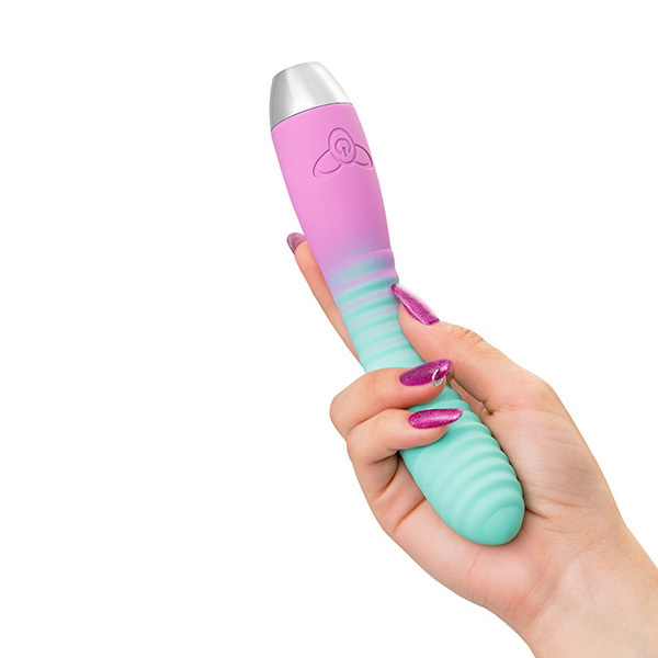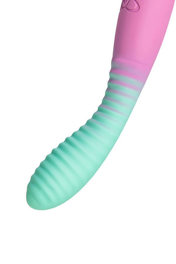 Позвольте представить Azalia от Flovetta - вибратор с плавным градиентом от нежного мятного до теплого розового оттенка, который привнесет в вашу жизнь моменты настоящего наслаждения. Этот милый вибратор классической слегка изогнутой формы сочетает элегантный дизайн и функциональность, даря каждой девушке не только эстетическое удовольствие, но и непревзойденные ощущения.