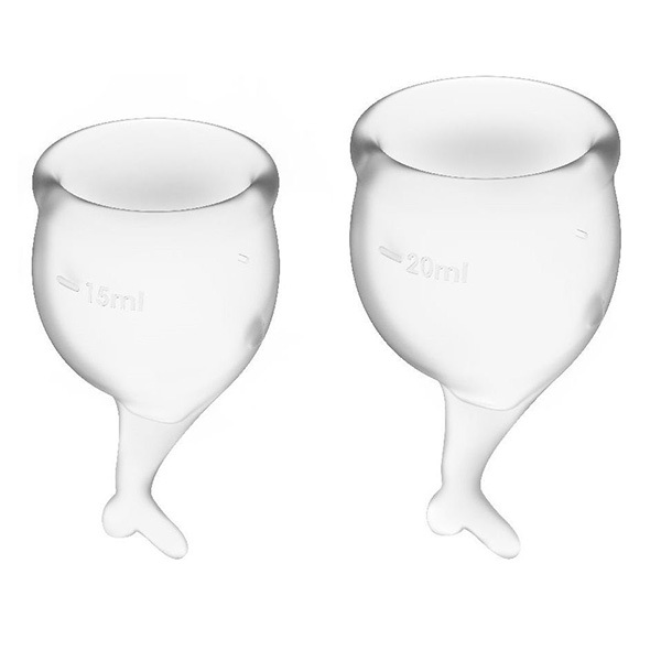 Feel secure Menstrual Cup - набор, состоящий из двух менструальных чаш, вместимостью 15 и 20 мл. Изготовлены они из медицинского, приятного на ощупь силикона. Благодаря бесшовной обработке и элегантно расположенной мини-ручке в виде хвостика чашка очень проста и приятна в использовании.