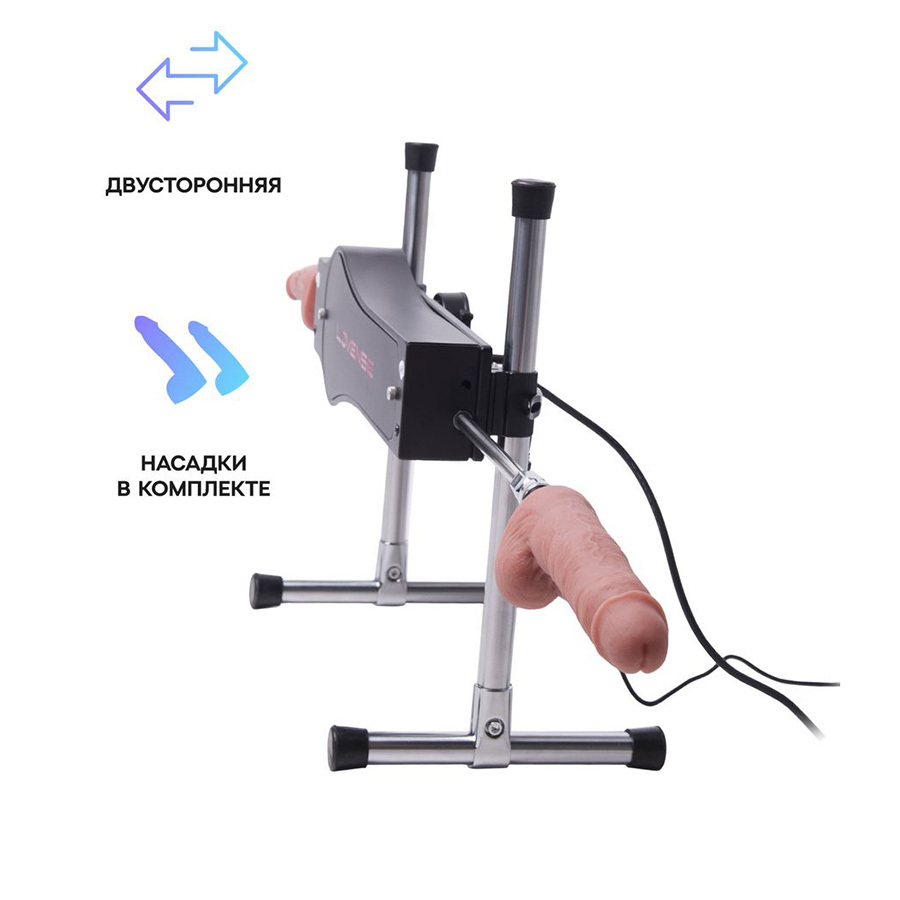 Универсальная конструкция имеет регулируемые угол, высоту и длину хода (до 11,4см). Различные варианты использования предполагают доступ к множеству разнообразных поз для проникновения. Её легко настроить не только для соло-игры - двусторонняя конструкция с толчковыми движениями позволяет использовать машину двум людям одновременно.