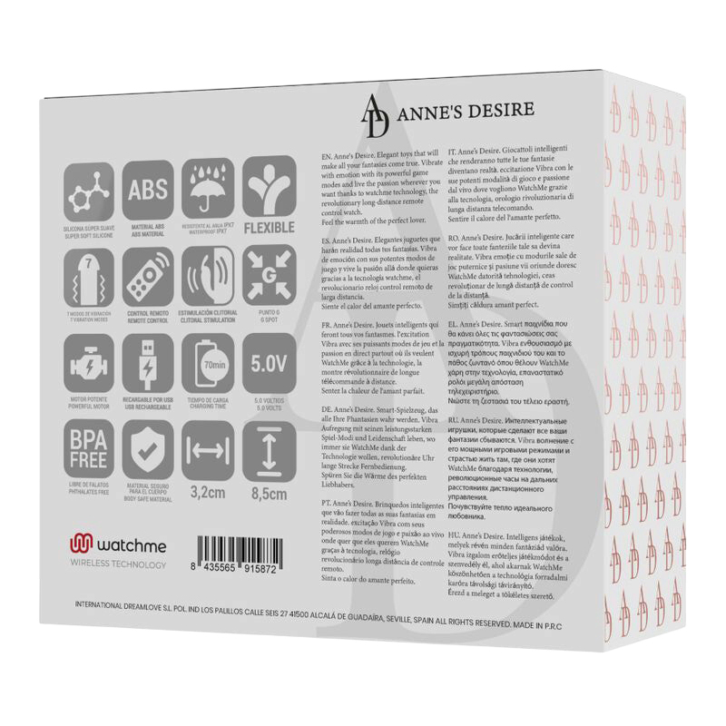 Особенностью этого интимного аксессуара является беспроводной пульт дистанционного управления, с помощью которого вы можете легко контролировать удовольствие, не прерывая возбуждение. Умные часы позволят Вам дистанционно управлять вибрацией и функциями секс-игрушки. Вы можете выбрать одну из 7 захватывающих программ вибрации с разной степенью интенсивности. Это инновационное устройство предлагает: