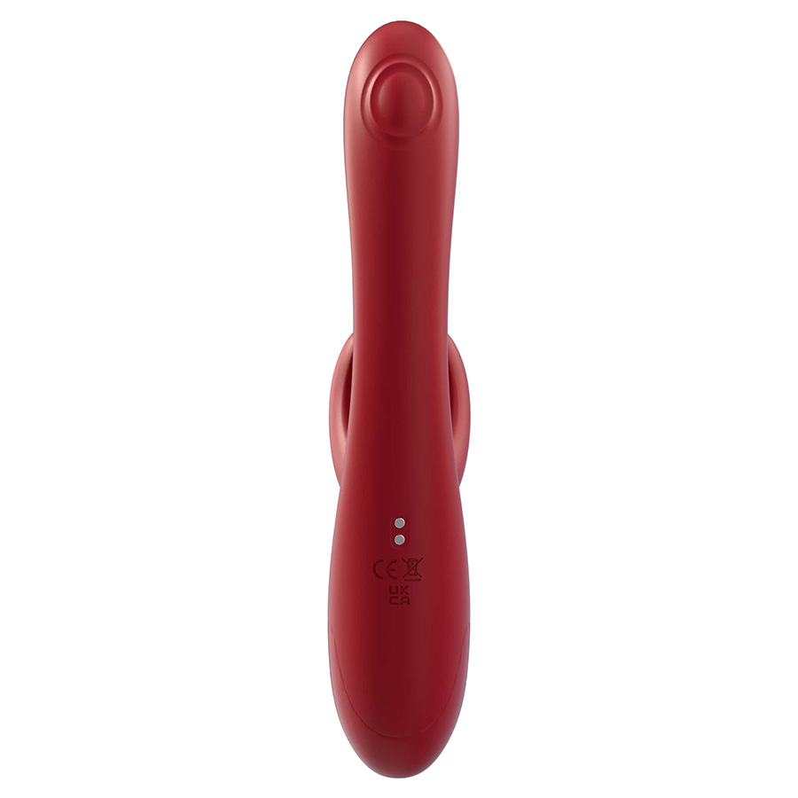 Интуитивно понятное управление и удобное расположение кнопок, делает использование вибратора максимально простым, чтобы полностью сосредоточится на удовольствии. Само же управление осуществляется с помощью трех встроенных в основание кнопок. Чтобы включить или выключить игрушку, необходимо нажать и в течении трех секунд удерживать кнопку, которая расположена по середине. Верхняя кнопка отвечает за включение манящих движений на клиторальной части, нижняя за пульсацию в вагинальной.