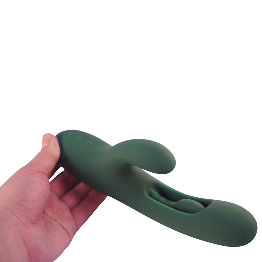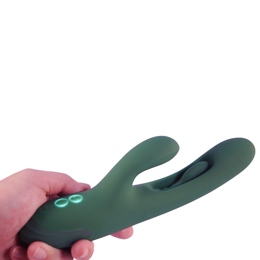Инновационный вибратор-кролик с тремя мощными моторами Amovibe Zenora Rabbit Vibrator Green создан для тех, кто ценит интенсивные ощущения и многослойную стимуляцию.