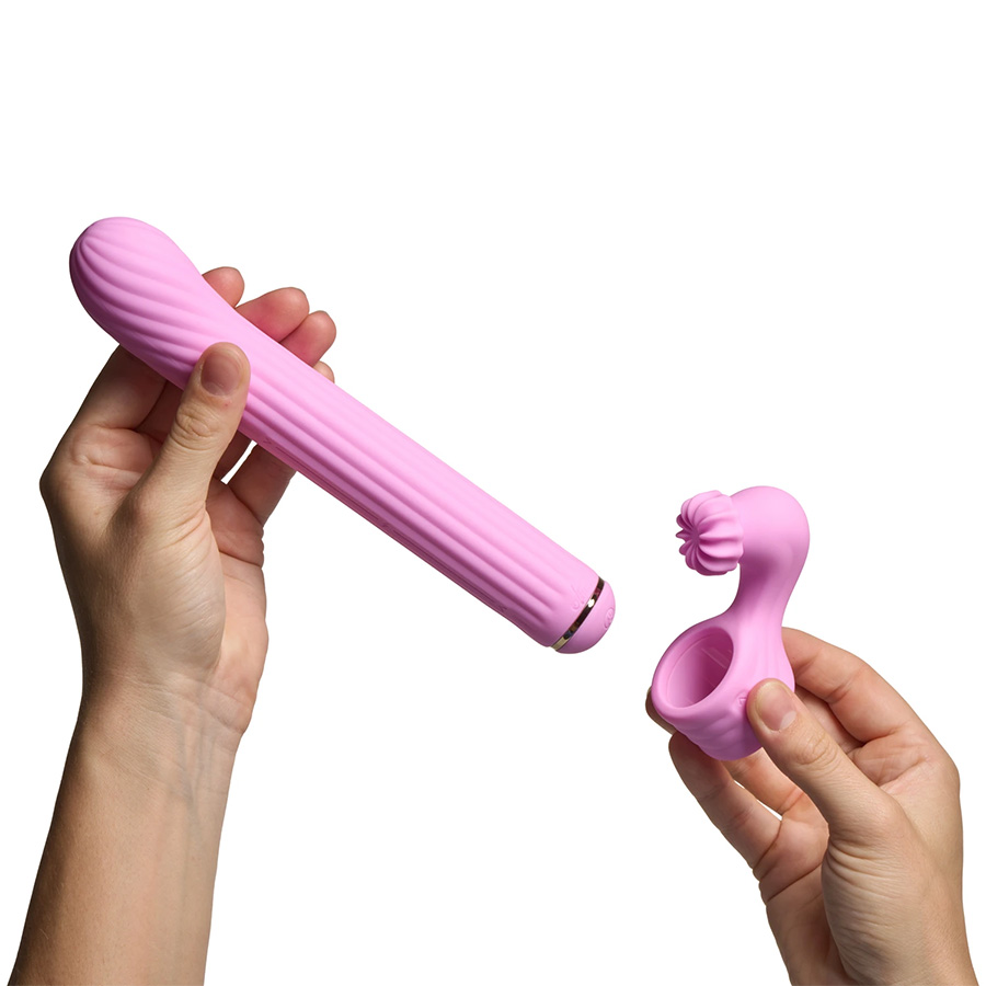 Основной стик может использоваться самостоятельно как вибратор-палочка для более широкой и глубокой вибрации по всему телу. Но помимо основного вибратора, в комплект входят также 4 прикрепляемые насадки для клитора: вибрационная, для всасывание, облизывания и замешивания. Это позволит вам выбрать до 4 уникальных комбинаций, соответствующих вашему настроению.