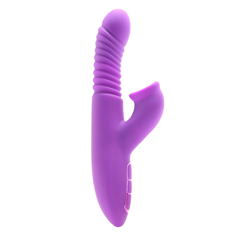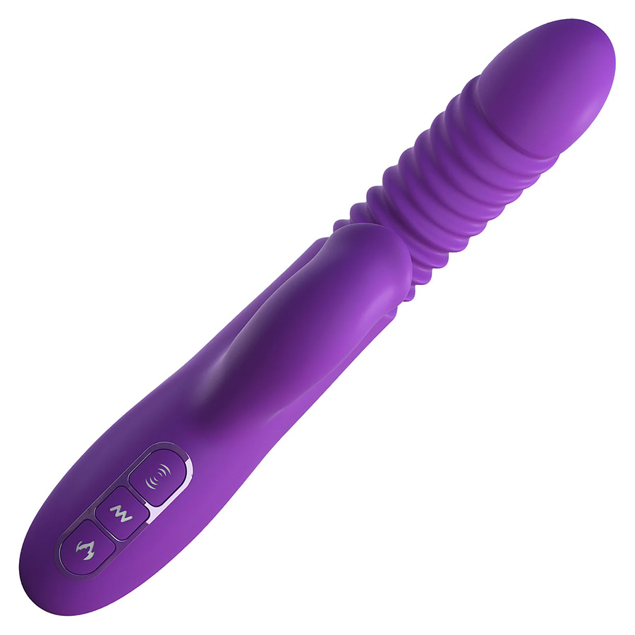 Вибратор-кролик PipeDream Fantasy for Her Ultimate Thrusting Clit Stimulate Dual Silicone Vibrator Purple выполнен из великолепного фиолетового силикона, поэтому выглядит так же хорошо, как и ощущается - положите его на прикроватную тумбочку перед использованием и украдкой поглядывайте на него, чтобы разжечь возбуждение у себя или у партнера. В руке он ощущается как знакомый, классическая форма и очень сбалансированный вес, его легко направлять внутрь, вокруг и над чувствительными точками.