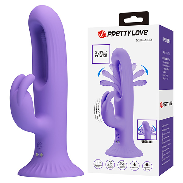 Вибратор с клиторальным стимулятором Pretty Love Killmoulis Rabbit Vibrator BW-500064 оснащен двигающимся язычок внутри вагинальной части, который вибрирует непосредственно на зоне G. Мощный моторчик имеет 4 скорости и 12 режимов вибрации. Язычок работает вперед и назад, обеспечивая внутреннюю стимуляцию, от которой вы будете дрожать.