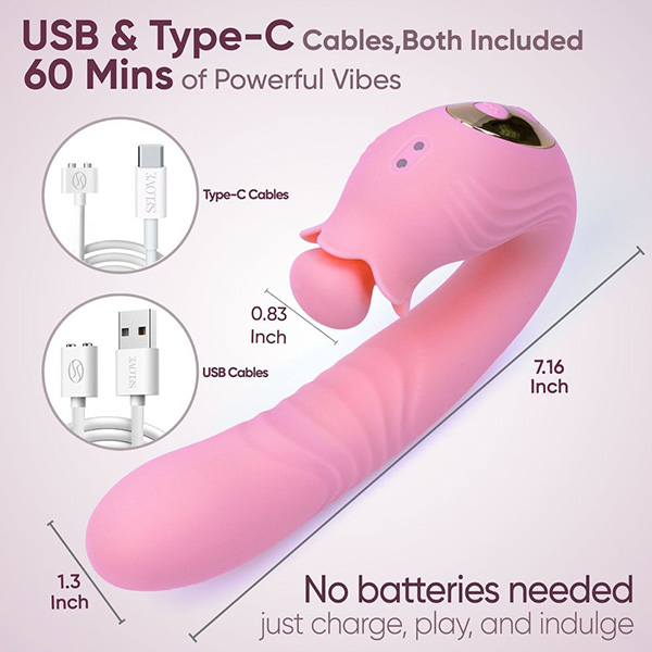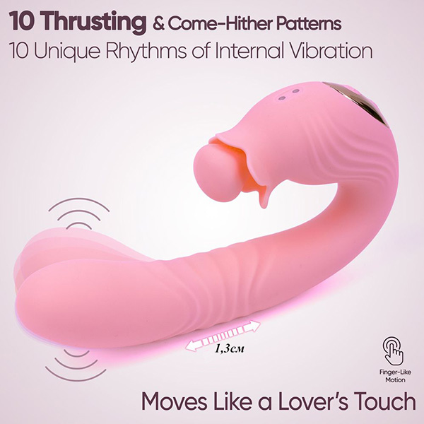 Вращающийся стимулятор клитора работает с высокой точностью, а изогнутый стержень внутри сочетает поступательные движения и глубокие вибрации, ритмично лаская точку G. Каждое движение имитирует прикосновения, которых хочется больше всего: мягкие, неторопливые и постепенно усиливающиеся.