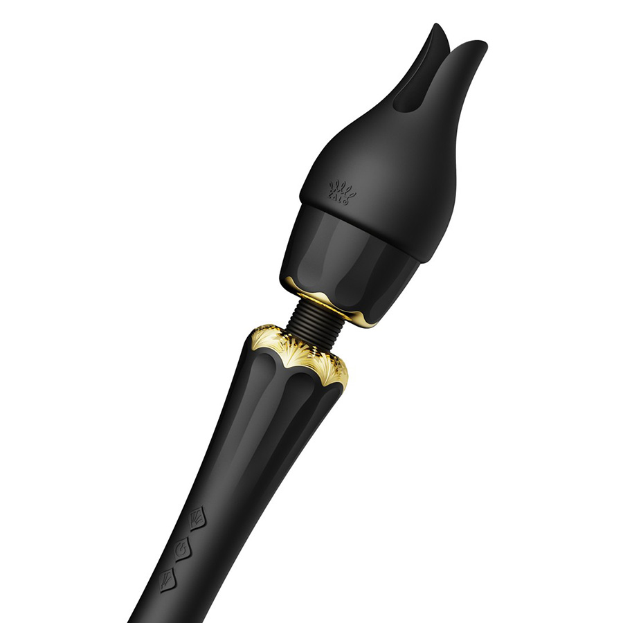 Массажер-палочка Zalo Kyro Wand Massager Obsidian Black выполнена в дизайне, вдохновленном скипетром могущественных египетских фараонов.