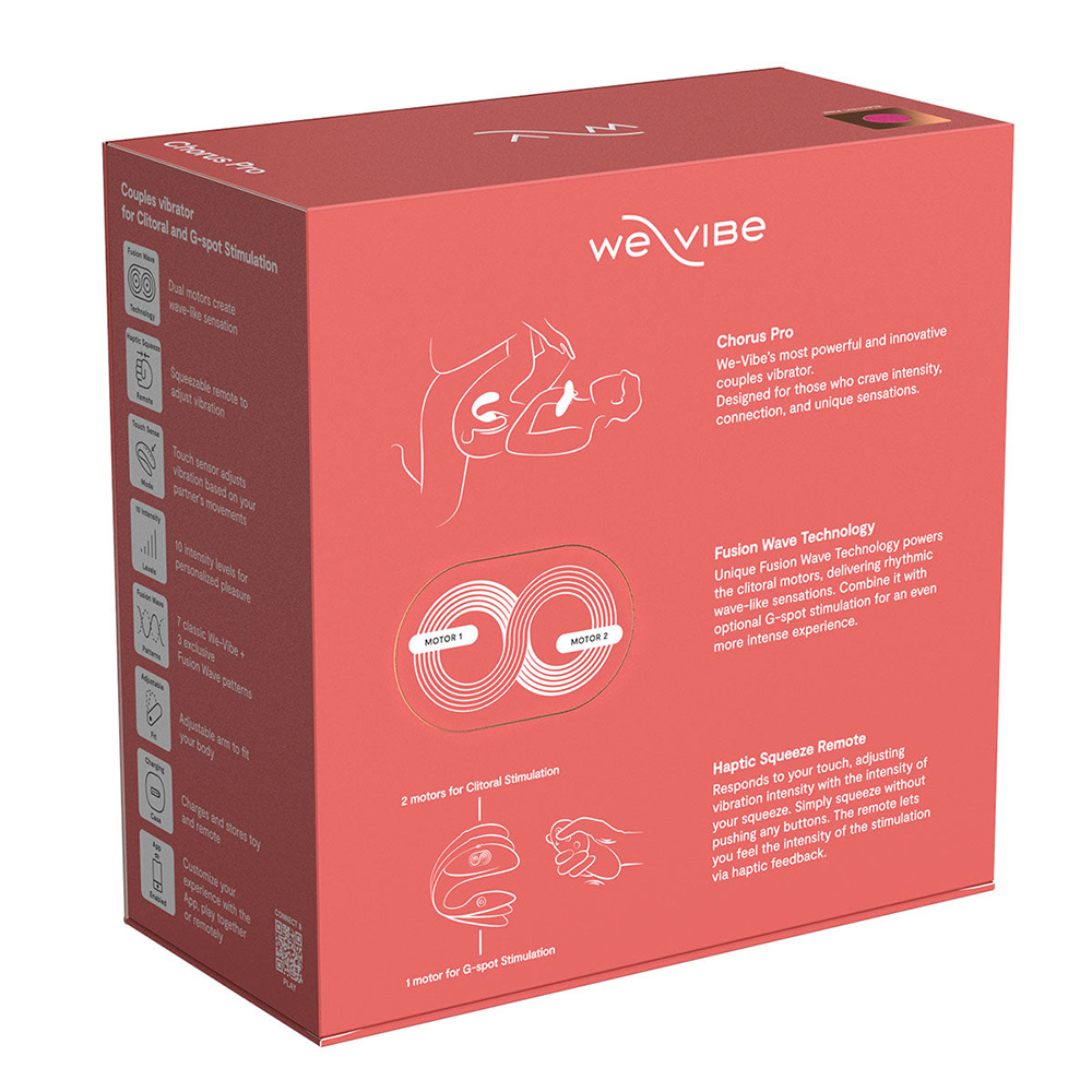 Созданный для пар, жаждущих близости и экспериментов, We-Vibe Chorus Pro приглашает вас открыть для себя новые способы общения и игр. Идеально подходит как для новичков, так и для опытных пользователей, он прост в использовании и настройке.