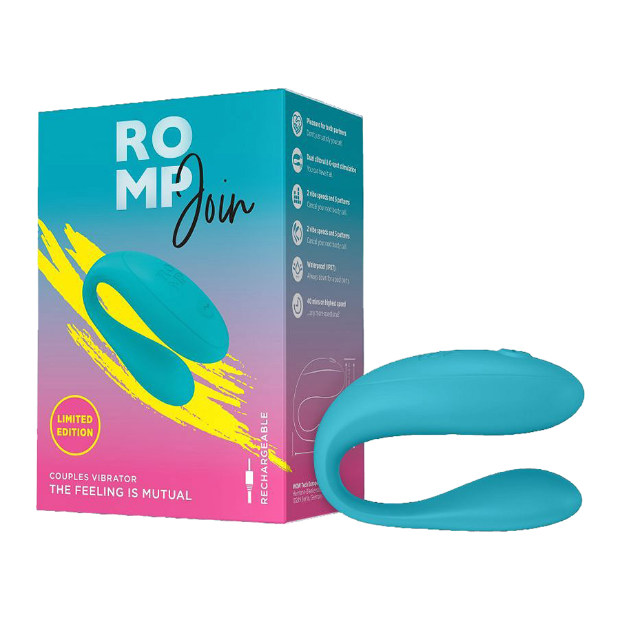 Вибратор для пар с гибкой С-образной формой Romp Join Couples Vibrator RPV51SG7 предназначен для одновременной стимуляции точки G и клитора во время близости.