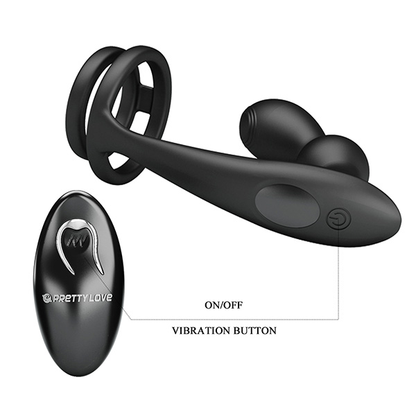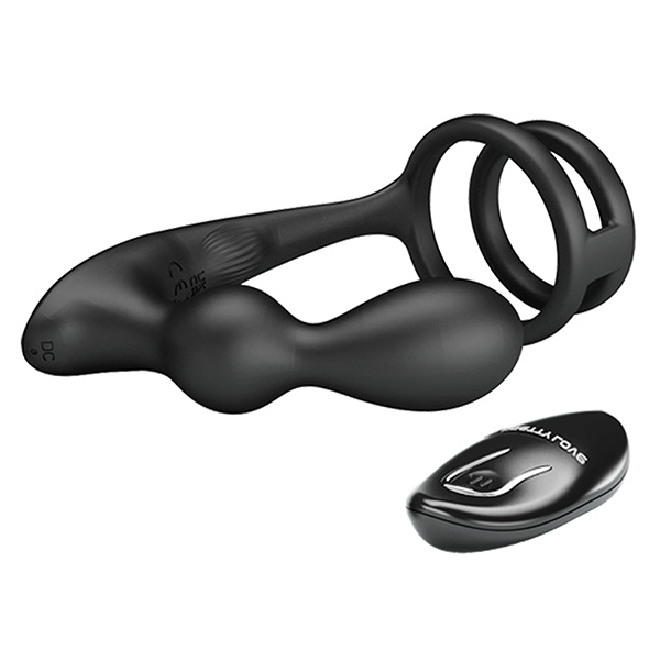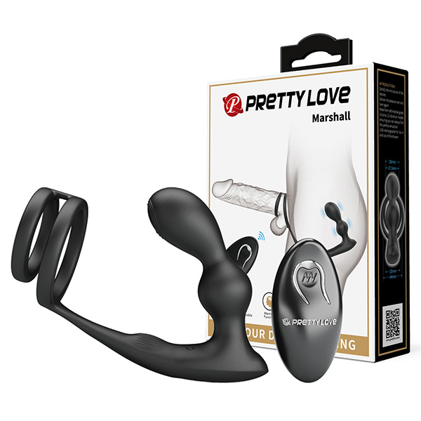 Черный вибростимулятор простаты с эрекционным кольцом Pretty Love Marshall BI-040132W - это анальная пробка с особым изогнутым дизайном.