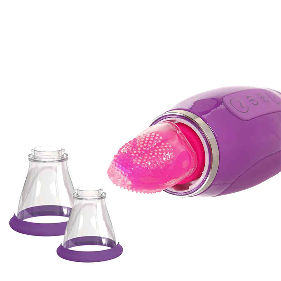 Для еще большей интенсивности наденьте одну из двух прилагаемых присосок. Одна предназначена для вульвы, другая - для сосков или пениса - обе создают мягкое натяжение, которое повышает чувствительность и приближает ваши интимные зоны к ласкам языка.