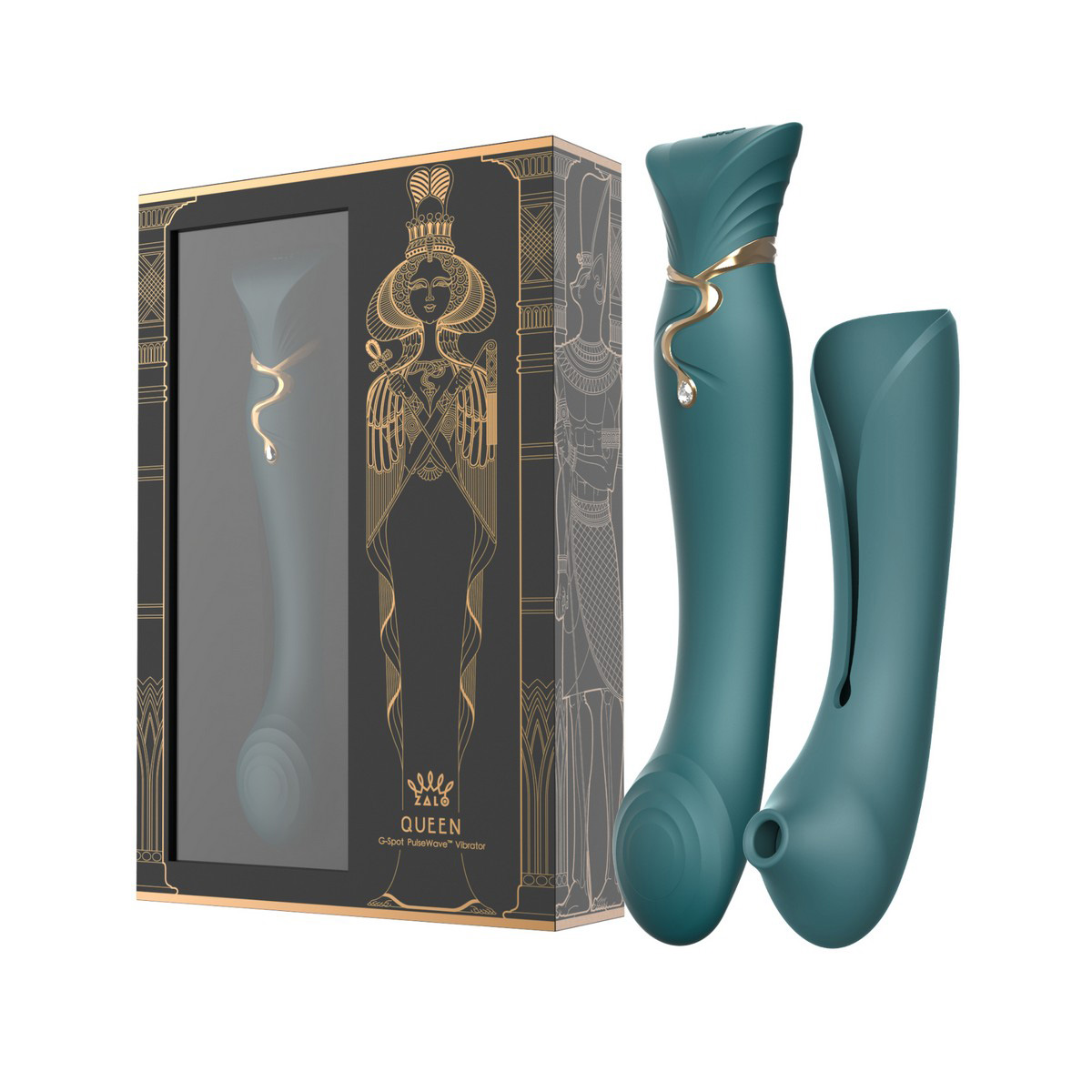 Ощутите истинную роскошь с вибратором Zalo Queen G-spot PulseWave Vibrator with Suction Sleeve Jewel Green, созданным для того, чтобы вы почувствовали себя королевой. Этот не просто инструмент удовольствия, а произведение искусства, вдохновлённое Клеопатрой, женщиной, которая знала цену страсти и властвовала над желаниями. Изящный, соблазнительный силуэт "Королевы" с золотыми деталями и настоящими кристаллами Swarovski излучает силу и роскошь.